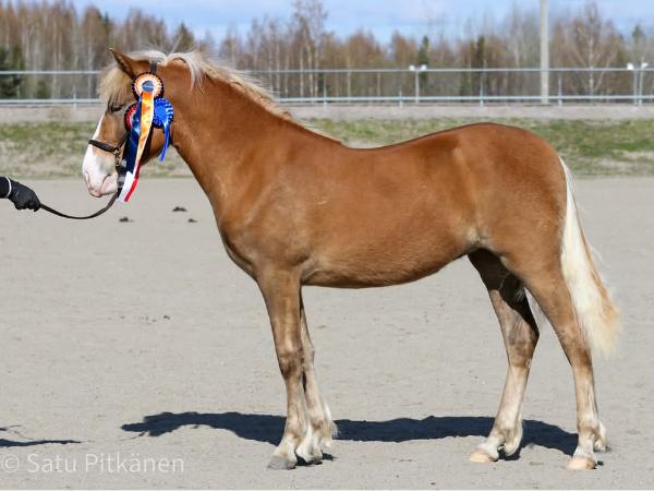 Jouhet: Tuntomerkit: liinahtavat jouhet Muu: Oej: Otj: osittain valkoinen ruunu, kirjokavio Pää: läpikäyvä läsi, valkoinen alahuuli jossa tumma täplä Polttomerkki: Runko: siima Vej: Vtj: matala vuohissukka, valkokavio